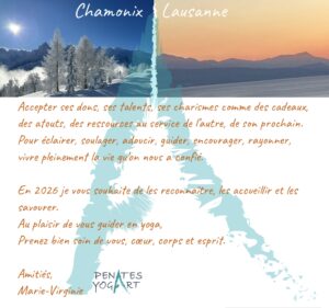 Je vous propose des cours de yoga au bord du Léman et au pied du Mont-Blanc, qui sont mes deux points d’ancrage aujourd’hui.